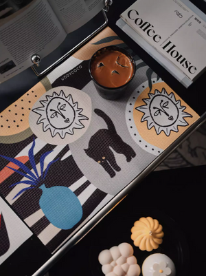 Inspired by the image of a rolling sun, this minimalist placemat adds warmth and modern design to dining spaces while protecting table surfaces.